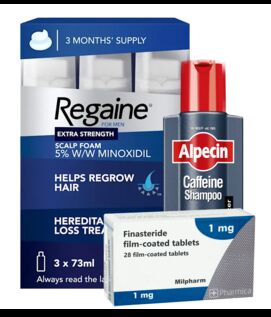 Regaine Extra Strength Foam 5% is used to treat hereditary hair loss in men aged 18-49. The active ingredient is minoxidil which promotes blood flow to the scalp hair follicles preventing further hair loss and promoting regrowth.